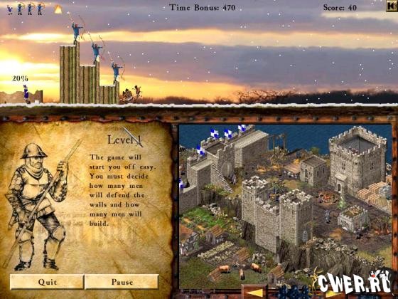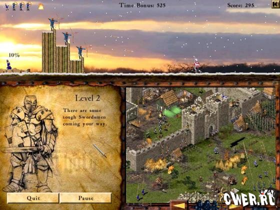 Мини-игра Цитадель. У вас маленький заборчик на нём 3-5 лучников, за заборчиком строитель строит башню и ходит принцесса, а с другой стороны бегут различные воины-юниты из игры Цитадель, ваша задача их поражать стрелами, не подпускайте их слишком близко! Иначе всё...