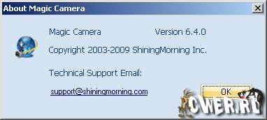 Shining Morning Magic Camera - это виртуальная веб камера. Magic Camera создает фотоснимки, записывает видео и для этого вам вовсе не нужна настоящая веб камера.Заранее подготовленный видеофайл будет передан, и ваши коллеги или друзья будут думать что сигнал идет с настоящей веб камеры. Благодаря Magic Camera вы сможете показывать видео демонстрации, отправить снимок вашим друзьям в реальном времени. Подходит для всех наиболее популярных программ: MSN Messenger, Yahoo Messenger, AIM, ICQ, Camfrog Video Chat, Skype и т.д.
