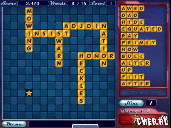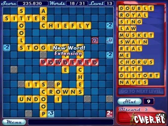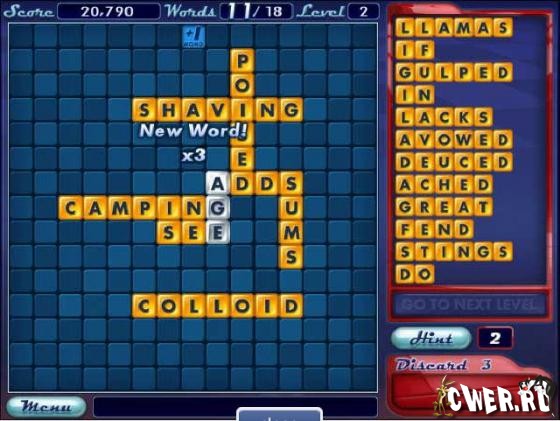 Во время игры вы можете воспользоваться умножителями слов и результатов, бонусами выбрасывания и аккумуляторами подсказок. Бонусы разбросаны по всему игровому полю, так что умело стройте свою паутину слов, чтобы заработать дополнительные очки и проще пройти уровень!