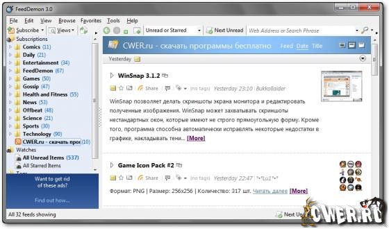 Скачать программу FeedDemon 3.0 Final (3,52 МБ):