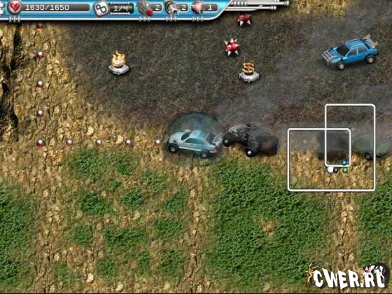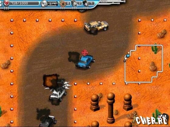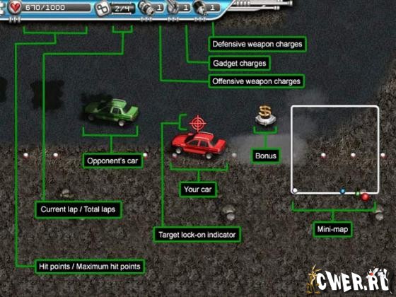 Трассы таят в себе немало трудностей. На опасных поворотах очень легко вылететь с дороги или врезаться в ограждение. То тут, то там установлены минные поля, разбросан мусор и разлито масло. Но есть и приятные сюрпризы, с помощью которых можно подобрать денежные призы или отремонтировать машину.