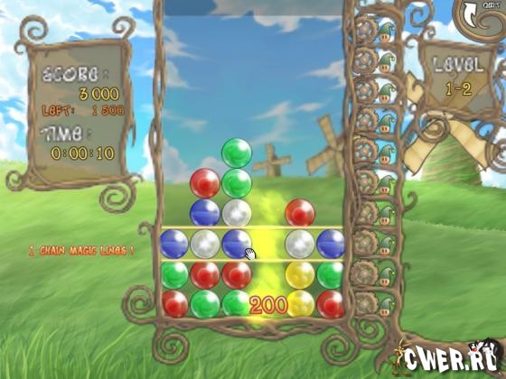 Создавайте линии из трёх и более шариков одинакового цвета, постепенно очищая игровое поле. Шарики можно двигать только горизонтально. Используйте самые разнообразные бонусы и создавайте невероятные комбо! Ваше приключение в мир магии начинается прямо сейчас!