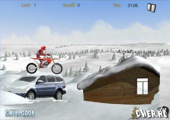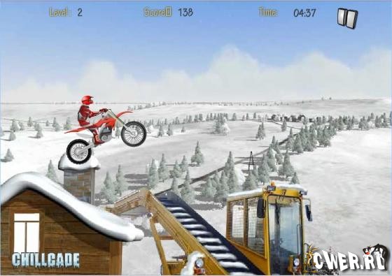 Испробуйте себя в роли зимнего мотоциклиста-каскадёра, который решил попробовать пройти захватывающие, экстремальные трассы.