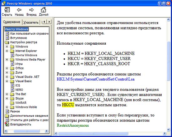 Скачать справочник "Реестр Windows" (1,31 МБ):