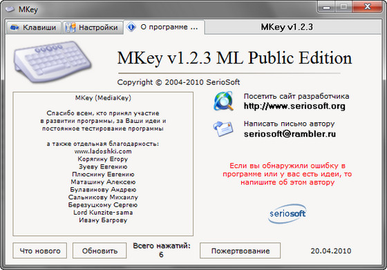 Скачать программу MKey 1.2.3 (1,23 МБ):