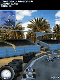 Картингом – начинают карьеру многие водители Формулы 1. Теперь твоя очередь. В java-игре Go - Karts 3D тебе предлагается превосходное качество графики и реальная физика. Ты сможешь соревноваться в разных условиях. Тебя ожидают 12-ь треков разной сложности и 3-и игровых режима. Размеры экранов: 128x160, 176x205, 176x220, 240x297, 240x320, 320x240, 360x640.