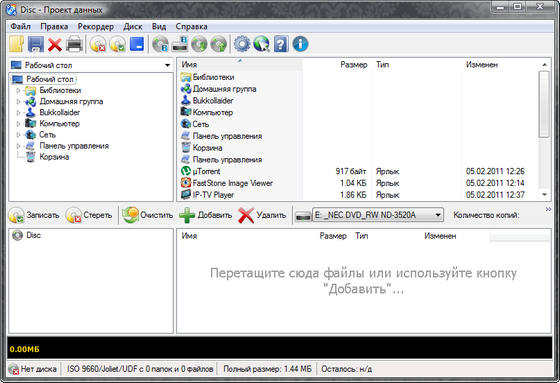 Создание CD/DVD с данными: