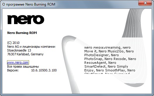 Nero Burning ROM - самый свежий набор программного обеспечения цифрового мультимедиа и домашнего центра развлечений следующего поколения, которое пользуется наибольшим доверием в мире. Его характеризует передовая функциональность, благодаря которой наслаждаться цифровым мультимедиа так просто. Этот простой в использовании, но мощный набор мультимедиа дает вам свободу создавать, считывать, копировать, записывать, редактировать, совместно использовать и передавать данные в сети. Что бы это ни было — музыка, видео, фото или данные — наслаждайтесь ими и используйте совместно с родными и близкими когда угодно и где угодно. Ваша цифровая составляющая жизни еще никогда не была такой свободной, ощутимой и веселой, как с простым в использовании командным центром Nero StartSmart.