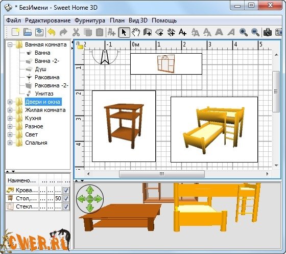 Sweet Home 3D - программа, предназначенная для проектирования интерьера. Sweet Home 3D поможет вам виртуально расставить мебель по комнатам вашего дома, выбирая наиболее удачное расположение элементов интерьера. Во время работы можно использовать 3D-модели, которые в большом количестве представлены на официальном сайте и доступны для бесплатной загрузки. Sweet Home 3D дает возможность предварительного просмотра интерьера в 2D (вид сверху), а также может визуализировать конечный вариант расстановки мебели в 3D.