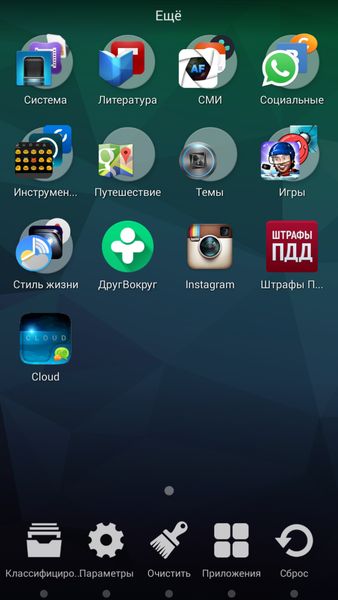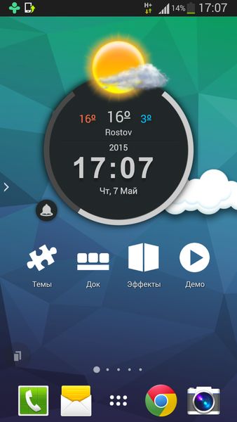 Приложение также может похвастаться большими возможностями в настройке внешнего вида: есть поддержка тем, легко настраивается скины иконок, есть даже фирменные виджеты, которые налаживаются поверх рабочего стола. Уникальной особенностью является функция, которая позволяет активировать вращение ярлычков по кругу.