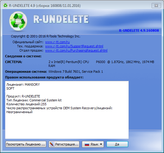 Скачать программу R-Undelete 4.9 Build 160808 (32,62 МБ):