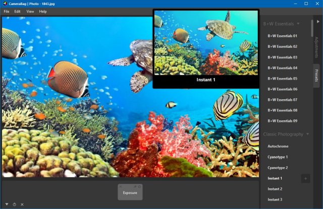 CameraBag — графический редактор, включающий более 25 инструментов для коррекции фотографий, более 100 настраиваемых фильтра для симуляции различных эффектов. Также имеются инструменты для настройки множества параметров по кривым, палитрам, с помощью удобных слайдеров, а также множество фильтров и эффектов.