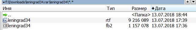 На TurboBit.net и salefiles.com архив содержит файлы leningrad34.fb2 и в "нагрузку" leningrad34.rtf, как и заявлено в описании. Вирусов нет!