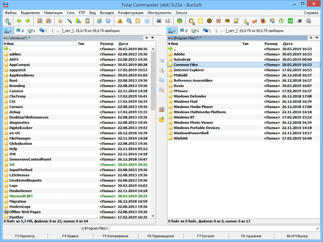Total Commander – пожалуй, самый популярный файловый менеджер со всеми необходимыми для подобных программ функциями. Кроме всех инструментов, характерных для файловых менеджеров, Total Commander содержит очень удобные просмотрщики мультимедиа и графических файлов, распаковщики ZIP, ARJ, LZH, RAR, UC2, TAR, GZ, CAB, ACE и дополнительные dll для других архивных файлов; чрезвычайно удобный ftp-клиент: можно скачивать/закачивать файлы в несколько потоков, предусмотрена докачка, поддержка www-прокси при работе с ftp и есть даже такая функция как подключение к заданному ftp в заданное время. Никогда не помешают и такие функции как UUE/MIME/XXE кодирование/декодирование и разрезка/склейка длинных файлов, а также множество других возможностей, крайне необходимых для работы с файлами. Сборка от BurSoft включает в себя x86 и x64 версии Total Commander в одном инсталляторе на русском и английском языках и обладает рядом преимуществ: содержит оптимальный набор программ и плагинов, поддерживает интеграцию дополнительных программ, является портативной, не оставляет следов в системе и может быть установлена на любой съемный носитель, использует внутренние файловые ассоциации, позволяет "зарегистрировать" TC на свое имя.