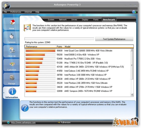 Система Windows так сложна, что только специалисты могут полностью ее настроить и отладить для лучшей работоспособности. С Windows Vista дела обстоят не лучше – множество установок перемещаются или переименовываются, так что их почти невозможно найти. Ashampoo PowerUp 3 - средство для вас, если вы не хотите тратить время на изучение настроек и обслуживания Windows, включая Windows Vista. Это единый центр контроля для всех ваших настроек Windows®, где есть все доступные объяснения. Защита от неправильных установок, контроль, опции настроек, значительное упрощение процесса в целом.