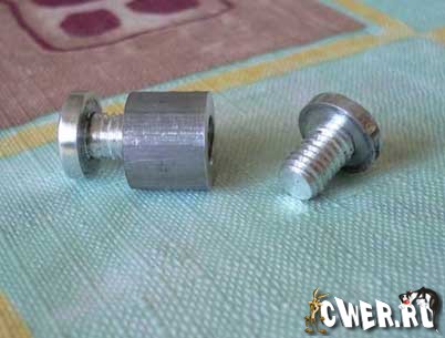 Далее потребуется изготовить резьбовые втулки с винтами. Винт с резьбой м6, или любой другой, что не принципиально..,а длинна втулки 10-12 миллиметров.