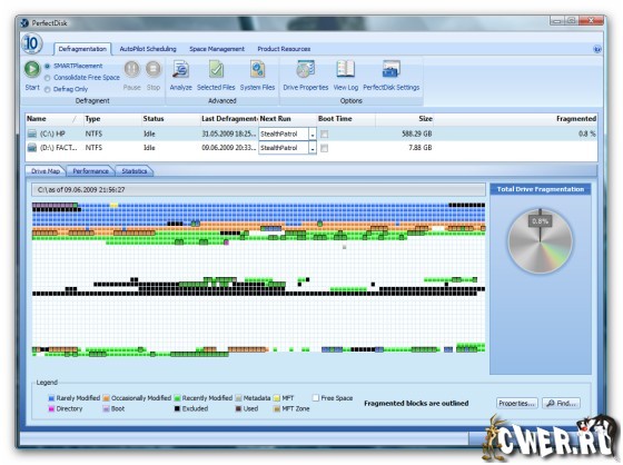 Скачать Raxco PerfectDisk 2009 10.00 Build 110 Professional x86 (60 МБ):