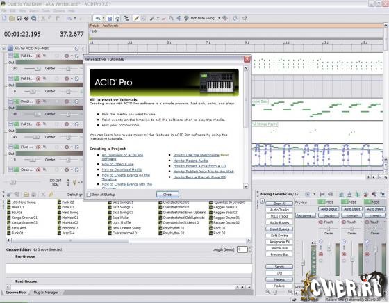Используйте приложение ACID Pro для записи собственных музыкальных композиций, микширования, производства звуковых дорожек с эффектом объемного звучания, написания музыкального сопровождения к видеофильмам, web-сайтам и Flash-анимациям. Интуитивно понятные и простые в использовании инструменты помогут вам создавать продукцию профессионального качества.
