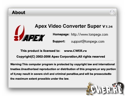 Скачать программу Apex Video Converter Super 7.34 (14,78 МБ):