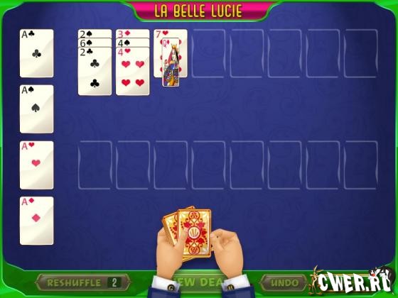 Набор увлекательных пасьянсов. В игре 10 видов классических пасьянсов и 4 красочных колод.