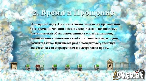 История юноши по имени Тим, который допустил ошибку, стоившую ему любви. И теперь он рискует жизнью, пытаясь спасти свою принцессу от злого монстра, заточившего ее в замке. Казалось бы, что может быть банальнее? Данная игра - это клон “Марио” с легкой примесью Prince of Persia. Простенькое управление, уровни, состоящие из лесенок и движущихся платформ, враги, для победы над которыми надо прыгнуть им на голову, и возможность повернуть время вспять нажатием одной кнопки - ничего не напоминает?! И при всем этом игра удивительно оригинальная, яркая и свежая.