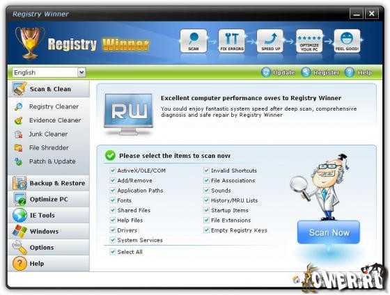 С использованием Registry Winner на регулярной основе ваша система будет поразительно стабильна. Registry Winner сканирует весь компьютер на возможные ошибки, которые ведут к проблемам в реестре. Происхождение у них может быть разное, но для программы это не имеет значения – она справиться со всем легко и быстро.