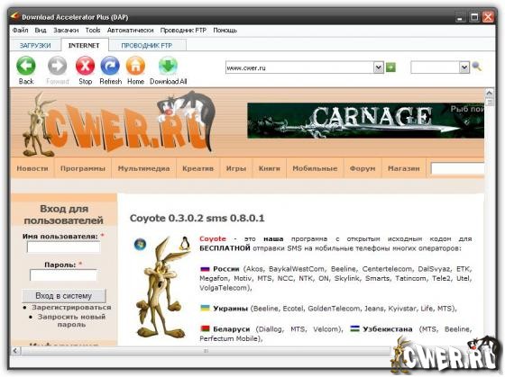 Download Accelerator Plus - менеджер закачек, позволяющей ускорить процесс скачивания файлов из интернета. Поддерживается одновременная загрузка с нескольких серверов, докачка после разрыва соединения, автовыключение компьютера после завершения сеанса работы. Утилита имеет встроенные средства поиска файлов на серверах. Менеджер хорошо интегрируется с браузерами, поддерживает работу через прокси и т.д. Имеется русский интерфейс.