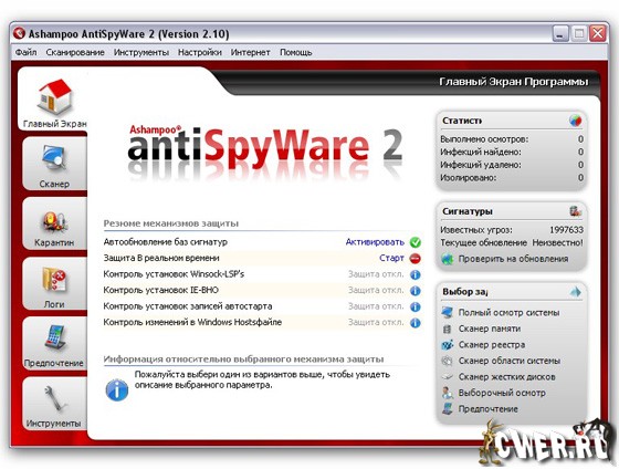 Новые свойства Ashampoo AntiSpyWare 2