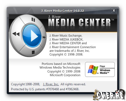 J.River Media Center - мультимедийный центр. Проигрывает большинство популярных аудио и видео форматов, включая MP3, аудио CD и DVD, может преобразовывать CD-аудиотреки в WAV и MP3, переписывать на жесткий диск виниловые диски и кассеты, а также создавать аудио-CD, причем для всех этих функций программа имеет множество настраиваемых параметров. Кроме этого, есть очень хороший и мощный по своим возможностям органайзер мультимедийных файлов, медиаредактор, эквалайзер, встроенный DSP и удобный планировщик заданий для автоматизации процессов проигрывания/записи, а также поддержка пульта ДУ. Из необязательных, но приятных функций - становящаяся уже почти стандартом для "приличных" программ возможность изменения внешнего вида с помощью скинов, мини-режим проигрывателя и "телевизор".