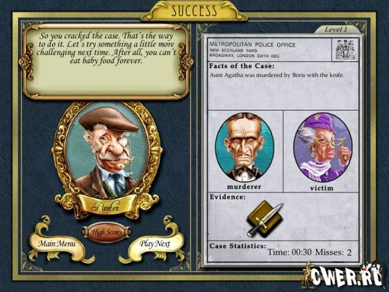 Помогите инспектору Паркеру раскрыть тайну поместья Мизантроп. Для того чтобы раскрыть преступление, вам необходимо найти подозреваемых, оружие, жертву, улики и подобрать нужные методы.
