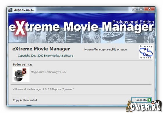 Скачать eXtreme Movie Manager 7.0.3.9 Deluxe Edition (33 МБ):