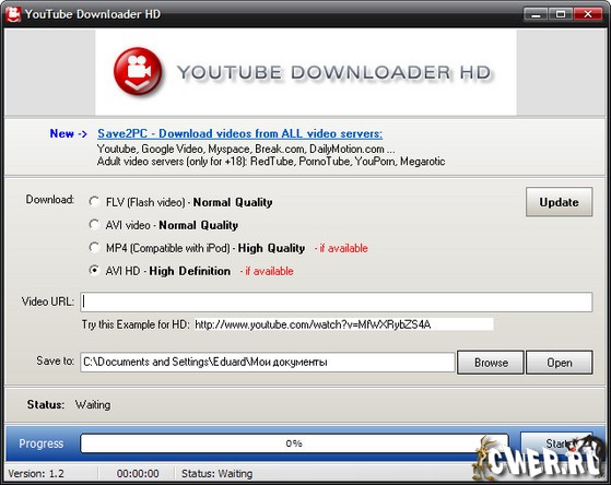 Скачать Portable YouTube Downloader HD 1.2 (2 МБ):