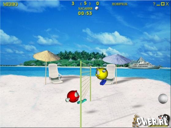 Примите участие в турнире по пляжному волейболу среди разноцветных колобков. Отправляйтесь на далекий тропический остров, насладитесь его райскими пейзажами и проведите незабываемые минуты на берегу теплого океана.