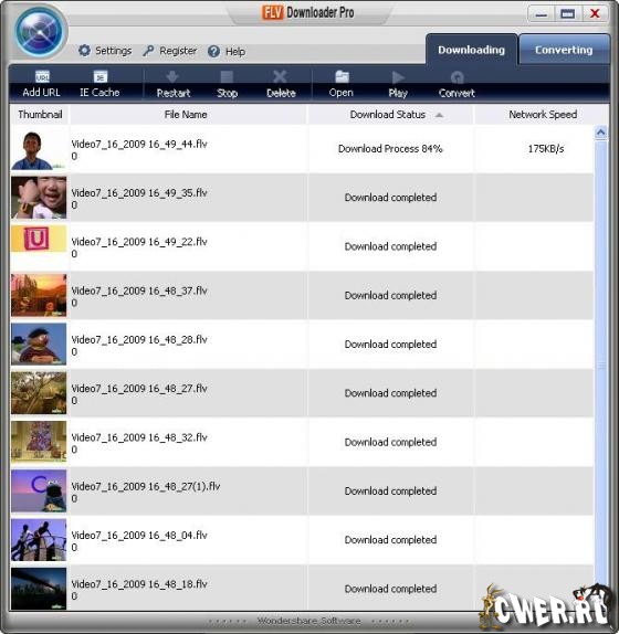 Wondershare FLV Downloader Pro является профессиональным инструментом для загрузки FLV (Flash Video) видео с сайтов в сети интернет, независимо от того, это RTMP или HTTP протокол, сайты, такие как Yahoo, YouTube, CNN, MySpace и др. Все можно быстро скачать на локальный диск. Встроенный мощный FLV конвертер будет конвертировать загруженные ролики в любые другие виды форматов, такие как, например, AVI, WMV, MPEG, MOV и т.д.