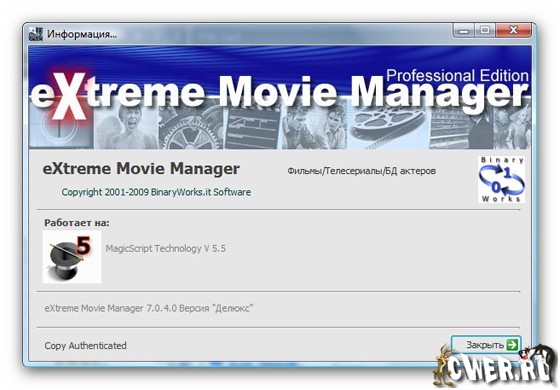 Скачать eXtreme Movie Manager 7.0.4.0 (33 МБ):
