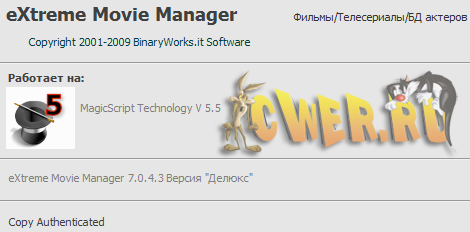 Скачать eXtreme Movie Manager 7.0.4.3 Deluxe Edition (25,6 МБ):