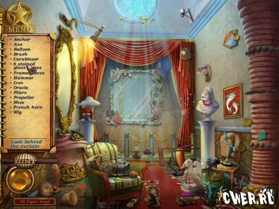английский найти предметы легко - под списком предметов и под ракушкой есть, что-то вроде шарика в котором показуется очертание любого предмета.