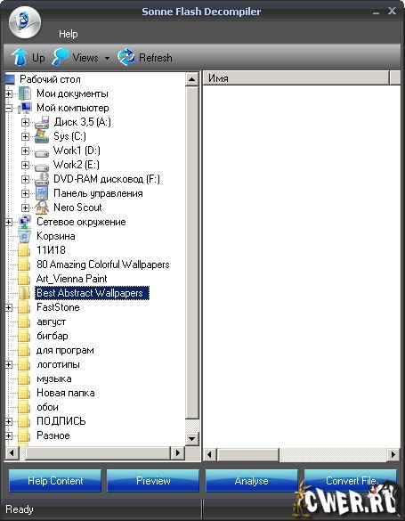 Sonne Flash Decompiler - мощная программа для флеш, позволяющая преобразовывать файлы между форматами SWF и EXE, а также позволяющая редактировать ролики в формате SWF. С помощью данной программы вы сможете редактировать текст, шрифты, картинки, звуки, формы, сценарии и другие элементы, находящиеся в флеш - файле.
