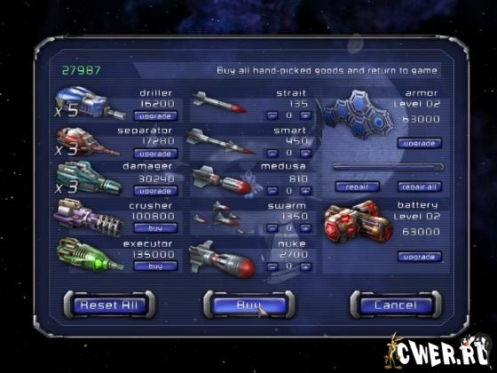 В этой увлекательной игре вы можете покупать новые виды оружия и брони, так как с каждым уровнем ваши враги становятся все опаснее и смертоноснее. По пути к завершению игры Вас ждут 5 миров (галактик), каждый из которых состоит из десяти уровней. Если они Вам покажутся достаточно сложными, вы сможете выбрать другой уровень сложности, их здесь 3. Есть возможность сохранения игры. Достойны ли вы дойти до конца?