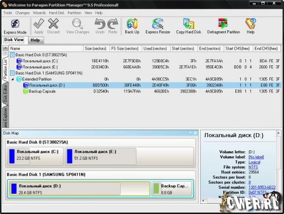 Скачать программу Paragon Partition Manager Professional 9.5 Build 8622 (115,25 МБ):