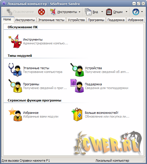 SiSoftware Sandra - системный анализатор для 32-х и 64-битных версий Windows, включающий в себя тестовые и информационный модули. Sandra старается превзойти другие подобные утилиты и показать реальную картину, объединяя в одной программе возможности для сравнения производительности как на высоком, так и на низком уровне. Вы можете получить сведения о процессоре, чипсете, видеоадаптере, портах, принтерах, звуковой карте, памяти, сети, Windows, AGP, соединениях ODBC, USB2, Firewire, и других.