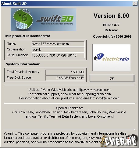 Скачать программу Electric Rain Swift 3D 6.0.877 (49,54 МБ):