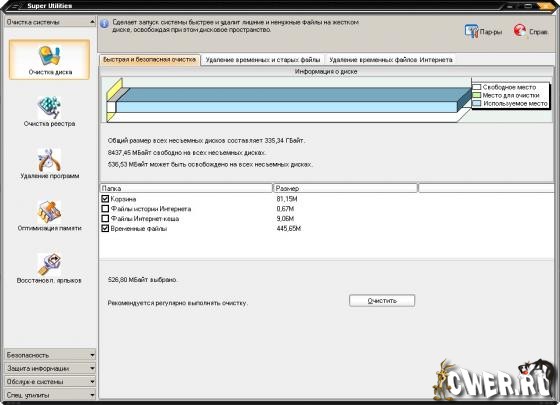 Чистильщик диска, позволяющий устранить с диска лишнюю информацию, оставленную программами и системой.