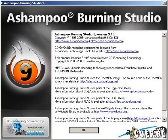 Ashampoo Burning Studio - новая версия программы для записи CD-RW, DVD-RW, DVD RW и Blu-ray дисков предыдущей линейки пакета. Утилита позволяет создавать проекты и записывать CD/DVD (в том числе MP3-CD, VCD, S-VCD и Blu-ray). Программа поддерживает длинные имена файлов (127 знаков для DVD и Blu-ray и 64 для CD), автоматическую настройку параметров, сохранение и загрузку проекта, создание образов, простое управление файлами с помощью DragandDrop и многое другое. Работает совместно с большинством записывающих устройств. Новая линия Ashampoo Burning Studio 9 сохранила все преимущества предыдущих линий и добавила новые возможности и усовершенствования. Никогда еще не было так легко превратить ваши файлы в DVD диски, которые можно проигрывать на любом DVD-плеере.
