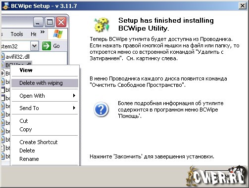 Когда Вы удаляете важные файлы с диска на Вашем компьютере, операционная система Windows не стирает содержимое этих файлов с диска – она только удаляет «ссылки» на эти файлы из таблиц файловой системы. Содержимое этих «удаленных» файлов продолжает храниться на диске и может быть легко восстановлено с помощью любой восстанавливающей утилиты. Программное средство BCWipe призвано дать Вам уверенность в том, что удаленные файлы не смогут быть восстановлены никаким «незваным гостем».