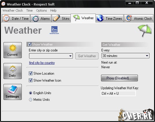 Программа, показывающая в системном трее точное время, которое можно синхронизировать с серверами точного времени и прогноз погоды в выбранном вами месте, а также температуру, выбранную погодную станцию и советы (какую выбрать одежду человеку, чтобы соответствовать погодным условиям). Кроме того, программа предоставляет возможность устанавливать будильники на выбранную вами дату и время.