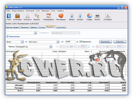 - поддержка учета Всего Бюджета с настраиваемым калькулятором