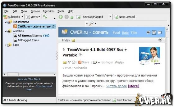 Скачать программу FeedDemon 3.0.0.29 PreFinal (3,47 МБ):