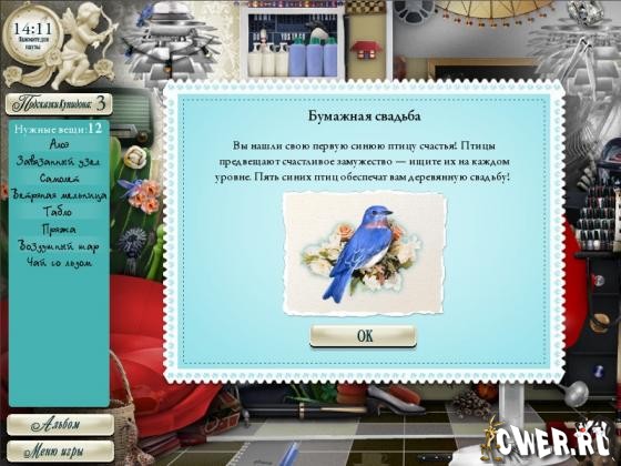 Но в одиночку справиться с этой задачей непросто, так что без вашей помощи ей не обойтись. Отыщите нужные предметы среди массы ненужных товаров, выберите свадебный торт и найдите подарок, который наверняка понравится молодоженам! Самые любознательные игроки смогут узнать, как состоялось знакомство виновников торжества, а также подробности их медового месяца.