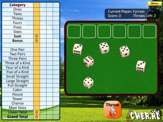 Наслаждайтесь двумя оригинальными версиями, в одной, этой известнейшей игры для всей семьи, старой доброй игре в кости! В игре Вы можете наслаждаться как классической игрой в кости, так и уникальным режимом игры Maxi Yatzy, - это игра с шестью костьми и развернутой системой начисления очков.